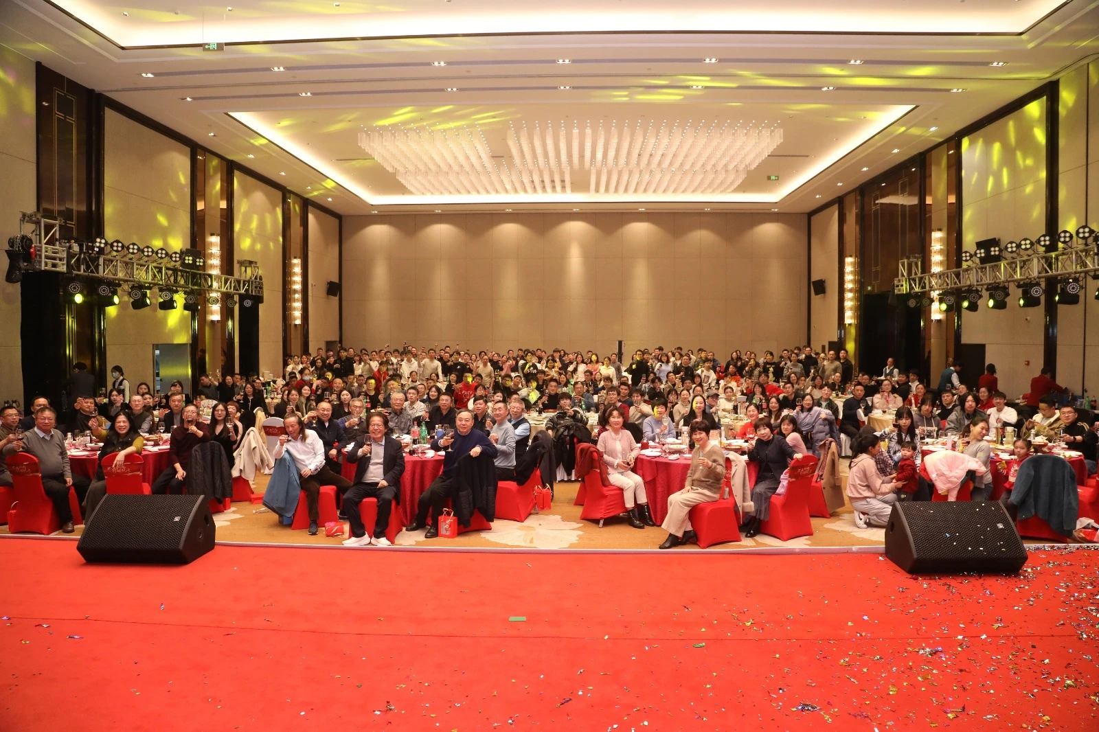 18:05,晚宴启幕,董事长高董发表了热情洋溢的祝酒辞,激励全体员工在新的一年里继续并肩前行,脚踏实地,共创璀璨成就。紧接着,全场所有人共同举杯,为迎接新年的到来而欢庆。晚宴期间,各式佳肴与美酒令人大快朵颐,杯觥交错间,精彩纷呈的抽奖环节、激动人心的桌奖与互动小游戏“摇一摇”轮番上演,大家在欢声笑语度过了一个难忘而美好的夜晚。