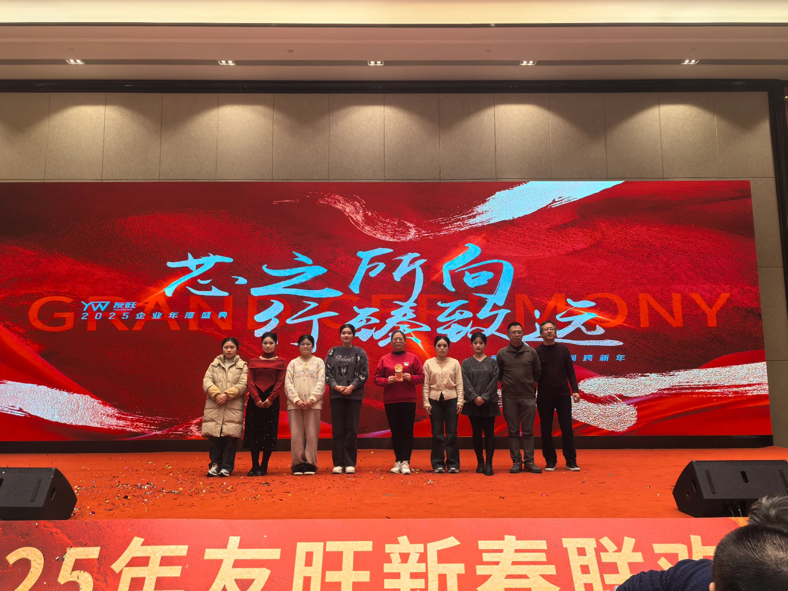 在联欢会中,特别设置了表彰环节。这一环节不仅是对过去一年中表现突出的优秀员工代表和优秀部门的正式认可,更是对全体员工辛勤付出的肯定和鼓励。表彰的不仅仅是个人的努力和成就,更是团队协作和集体智慧的结晶。通过表彰,公司希望能够激发全体员工的积极性和创造力,促进公司内部良性竞争和共同发展,为公司未来的持续发展注入新的活力和动力。公司通过层层筛选与严格评审,共产生1个优秀部门团队——测试技术部,荣获“人才培养先锋团队”称号,以及26名优秀员工,他们分别获得:“芯星璀璨最佳新人奖”、“芯途启航最佳导师奖”、“芯合嘉成最佳协作奖”、“芯光拍档职能支持奖”、“芯耀崛起最佳销售奖”、“芯辰智跃技术创新奖”、“芯辰领航技术进步奖”以及特别提名奖。罗总在表彰致辞中对获奖的员工给予了高度赞扬,并对2025年工作要点进行了展望和部署。